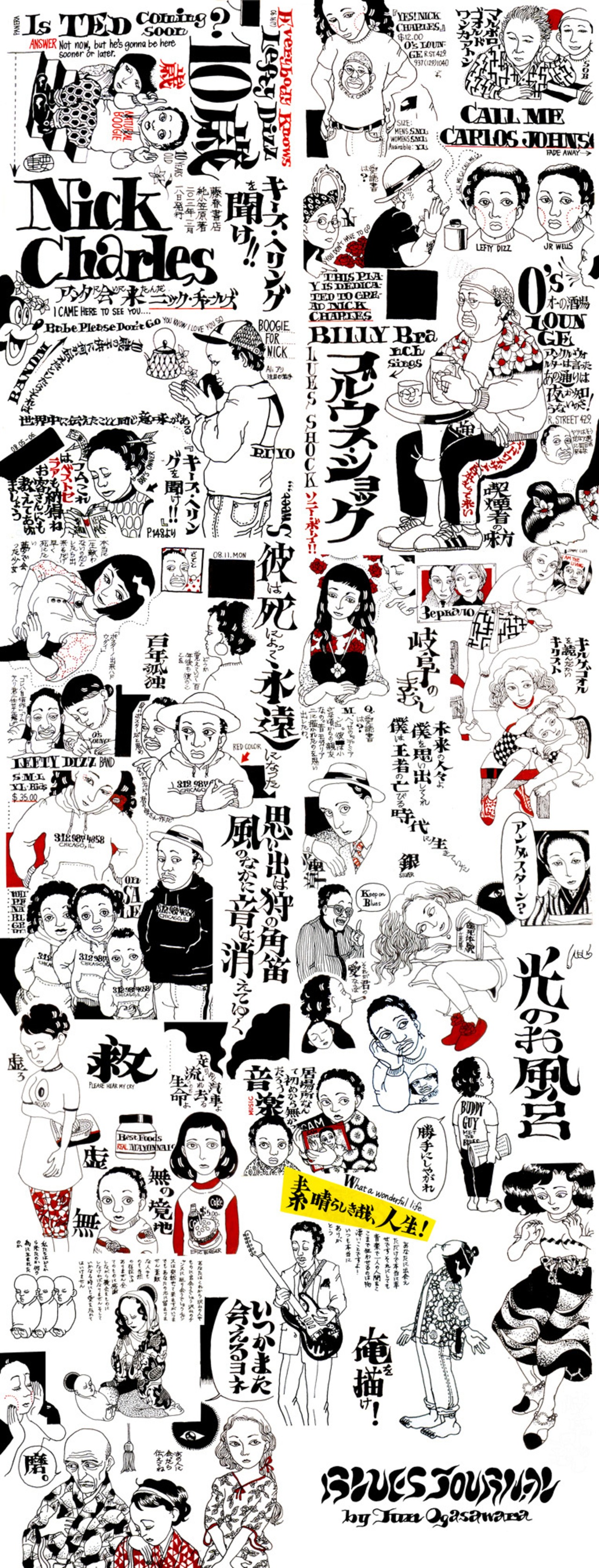 Jun Ogasawara『BLUES JOURNAL』から抜粋したイラストから制作した手ぬぐい