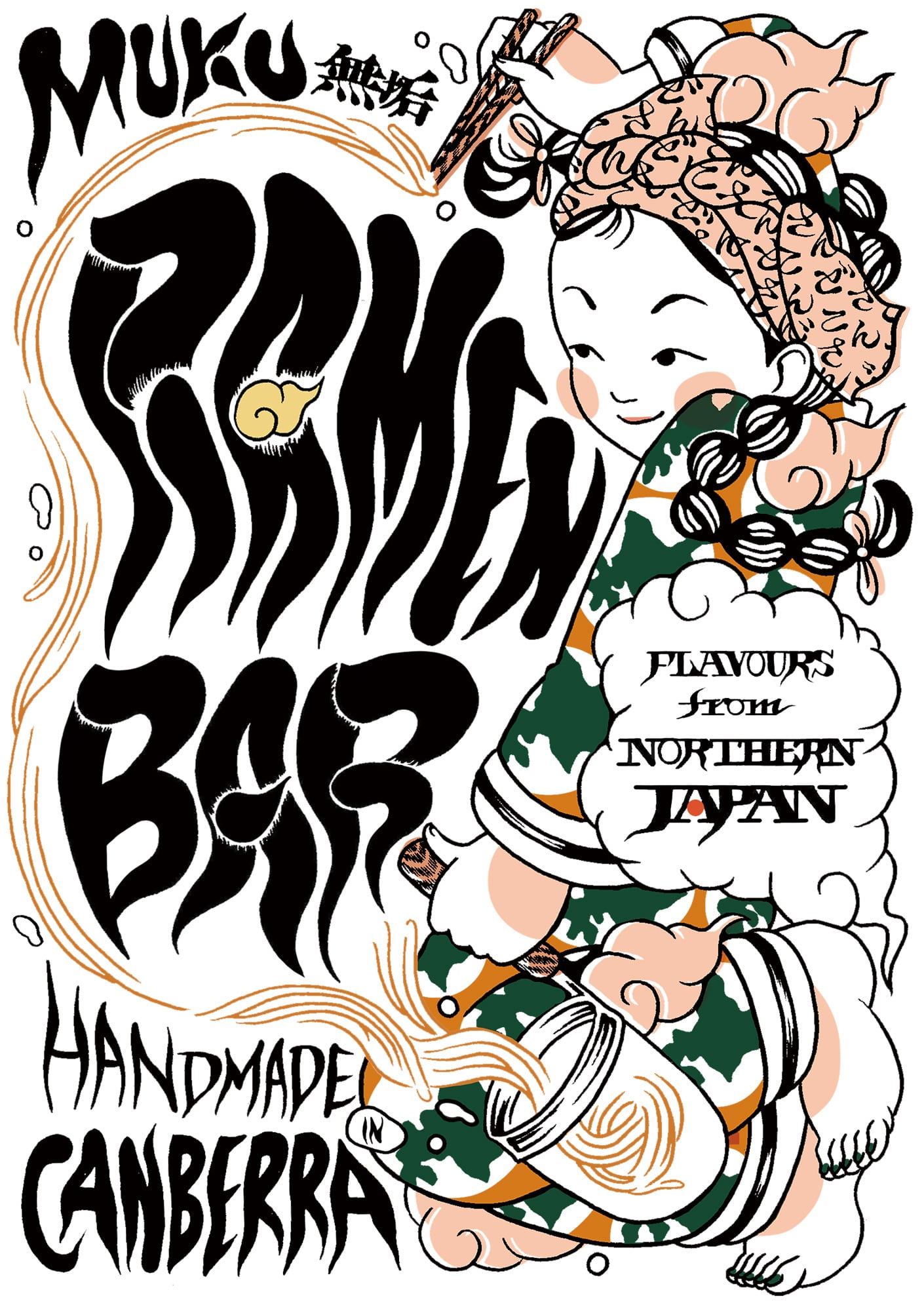 オーストラリア キャンベラのヴィーガンラーメンバー『無垢 muku』のために描き下ろしたイラストTシャツ ボディ: Printstar